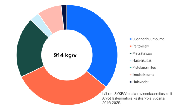 Yli puolet järveen tulevasta fosforista on peräisin ihmistoiminnasta. Kolmannes fosforista on peräisin peltoviljelystä ja toinen kolmannes on metsien luonnonhuuhtoumaa. Järven tilaan vaikuttava merkittävä paine on hajakuormitus.