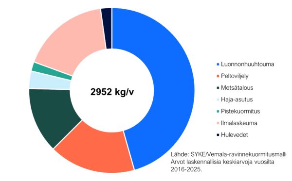 Sorsaveden vähäisestä fosforikuormituksesta merkittävä osa on luonnonhuutoumaa. Reilu kolmannes fosforista on kuitenkin peräisin ihmistoiminnasta.