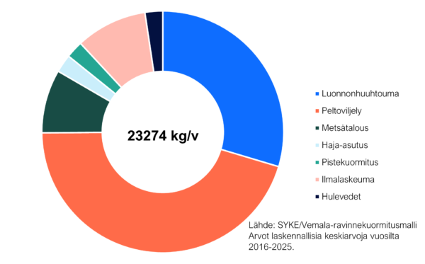 Liki 60 % Suvasveteen tulevasta fosforista on peräisin ihmistoiminnasta, josta peltoviljelyn osuus on kaksi kolmannesta. Kolmannes fosforista on metsien luonnonhuuhtoumaa.