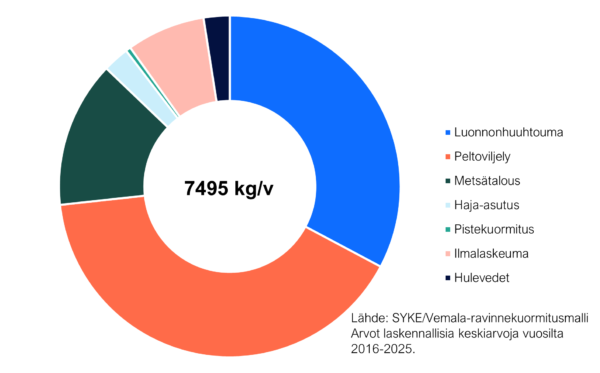 Lähes kaksi kolmannesta järveen tulevasta fosforista on peräisin ihmistoiminnasta, pääosin peltoviljelystä ja soiden ojituksesta. Neljännes fosforista on metsistä peräisin olevaa luonnonhuuhtoumaa.